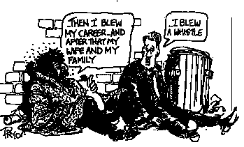 It should be noted, however, that in Australia whistleblowers are victimized. Australians have a culture of ask no questions about a person's past or private activities. This probably goes right back to convict days when prisoners of the crown rose to prominent places in Australian society after serving their sentence. Perhaps Australians really are different.